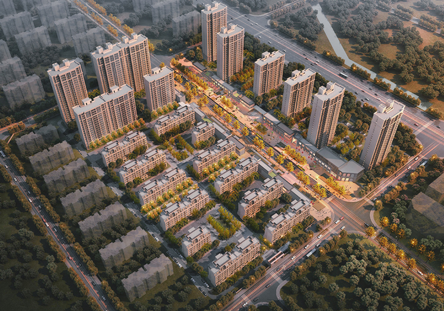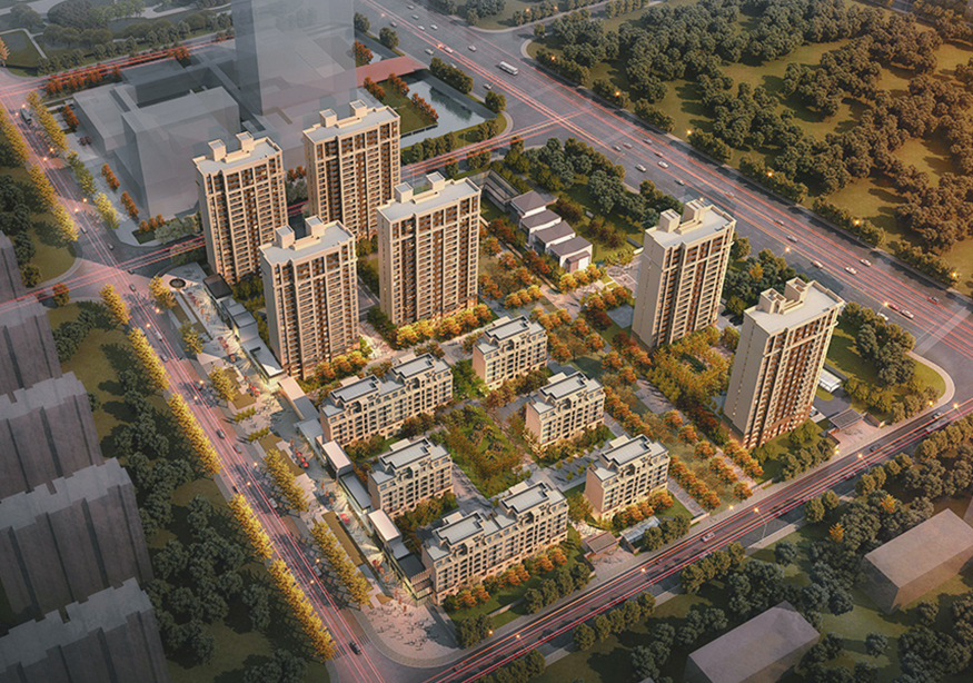 項(xiàng)目44號(hào)地塊代征城市道路用地面積為23400㎡,代征城市綠化用地面積為9400㎡,建筑限高最高為80m,不超過25層,地塊內(nèi)計(jì)容面積不大于171400㎡。商業(yè)計(jì)容面積不大于總計(jì)容建筑面積的3.5%,其中底層商業(yè)面積約為6000㎡ ,配套公建面積約為3830㎡(44,47#同屬一個(gè)項(xiàng)目)。